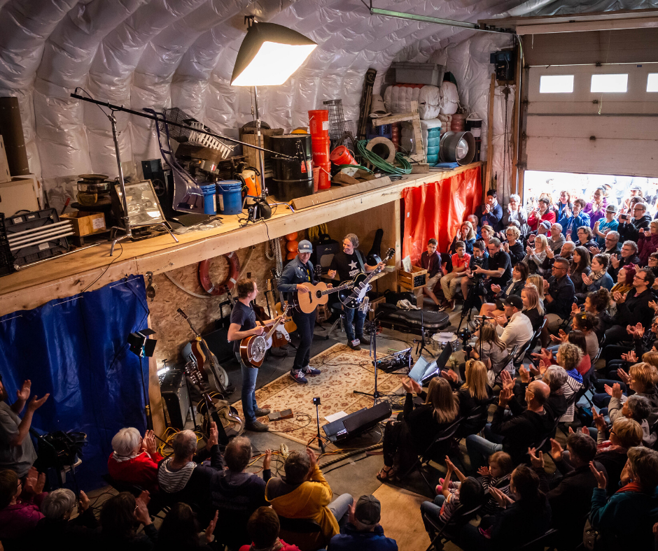 À l’occasion du Festival en chanson de Petite-Vallée, le hangar du pêcheur du village se transforme en salle de spectacle où sont présentés les désormais mythiques sessions acoustiques « Dans l’shed à Léon ». Accompagnés du duo gaspésien Dans l’Shed, les artistes à l’affiche s’y invitent, le temps d’un mini-concert arrangé à la sauce country-folk-americana.