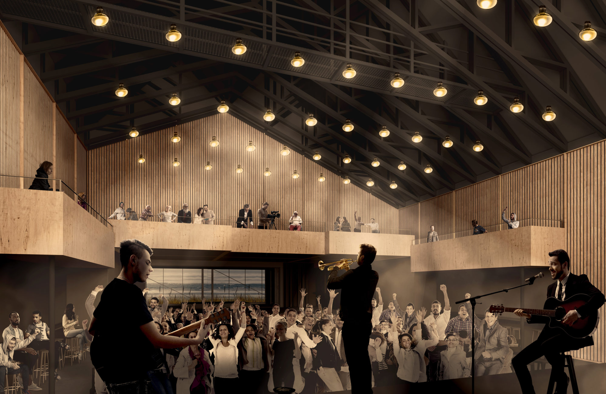 « L’intuition qu’on avait, c’était de scinder un peu le programme en deux volumes, un qui est la salle de spectacle et l’autre qui est vraiment les espaces d’accueil, les loges d’administration, tout ça », explique Stéphane Pratte.