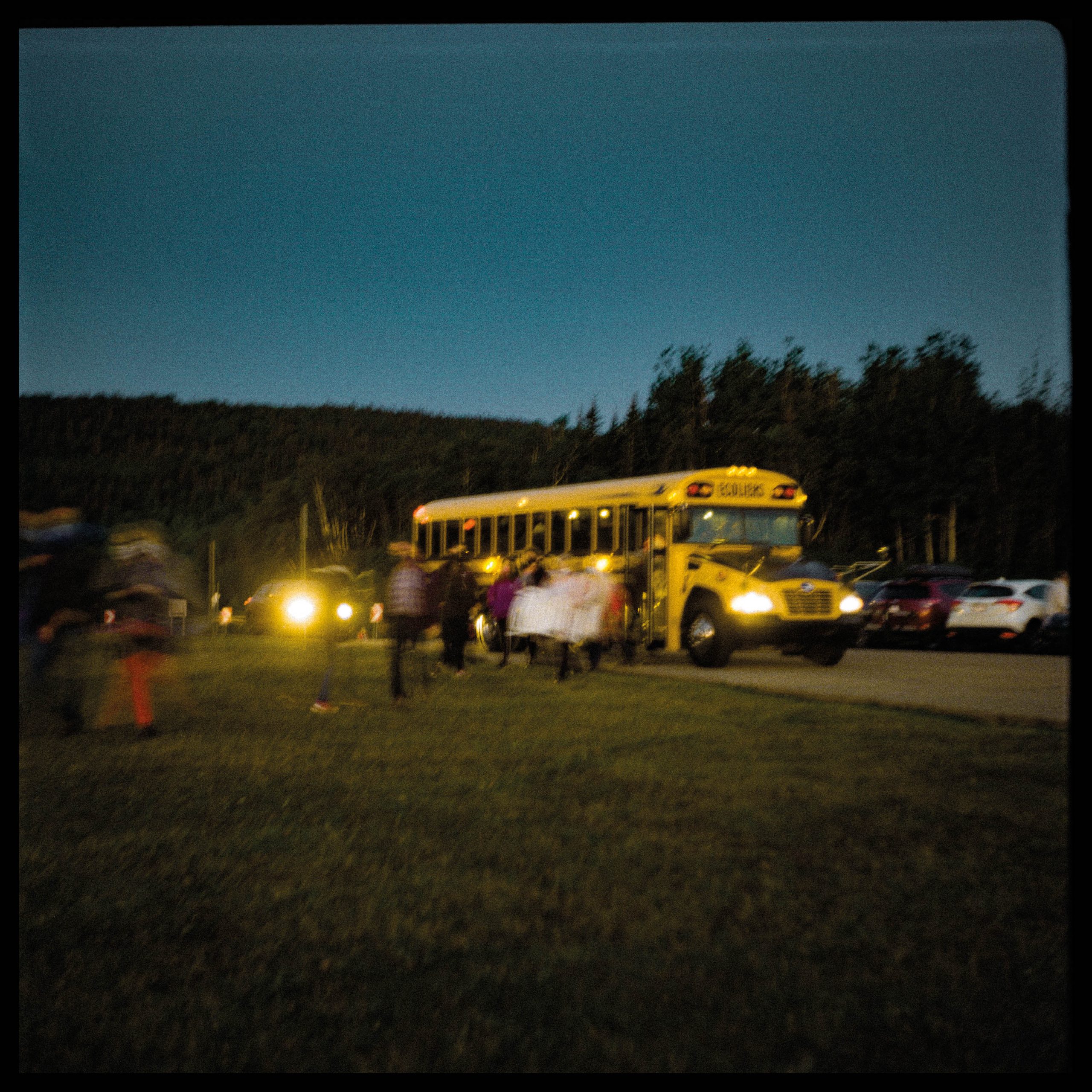 4h25 Dans un bus jaune Ça sent le souvenir Le cuir des sièges surtout Lumière grise et violette qui frappe le métal du plafond