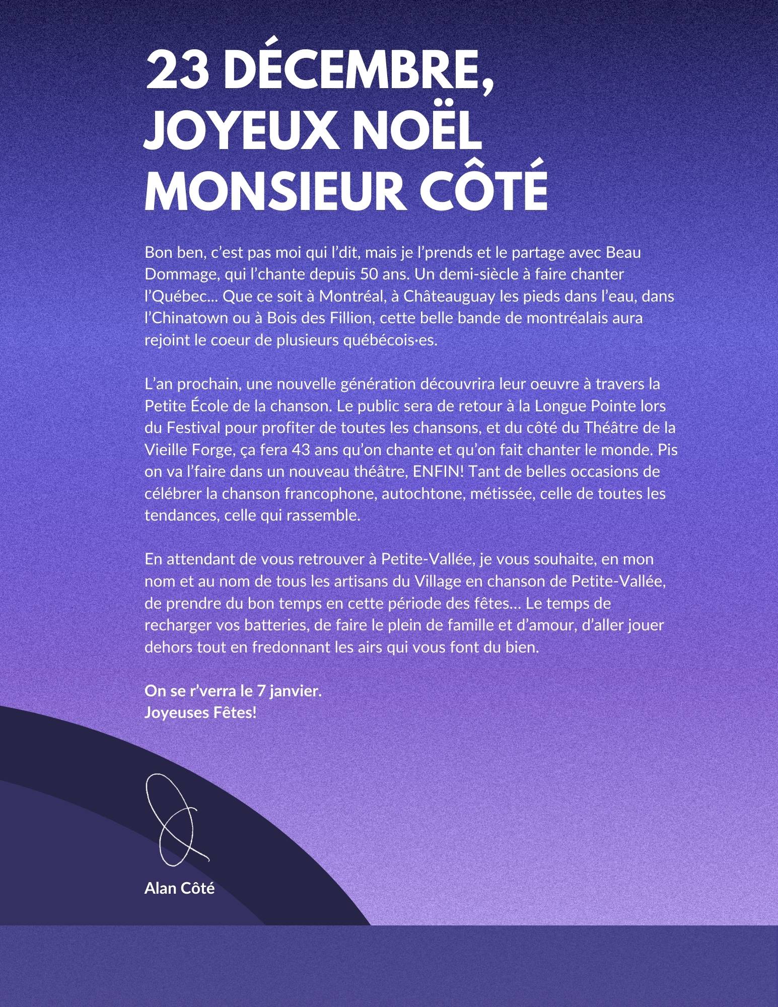 Veuillez noter que nos bureaux administratifs seront fermés du 19 décembre au 5 janvier inclusivement. Notre service à la clientèle téléphonique restera accessible jusqu’au 18 décembre à 15 h.